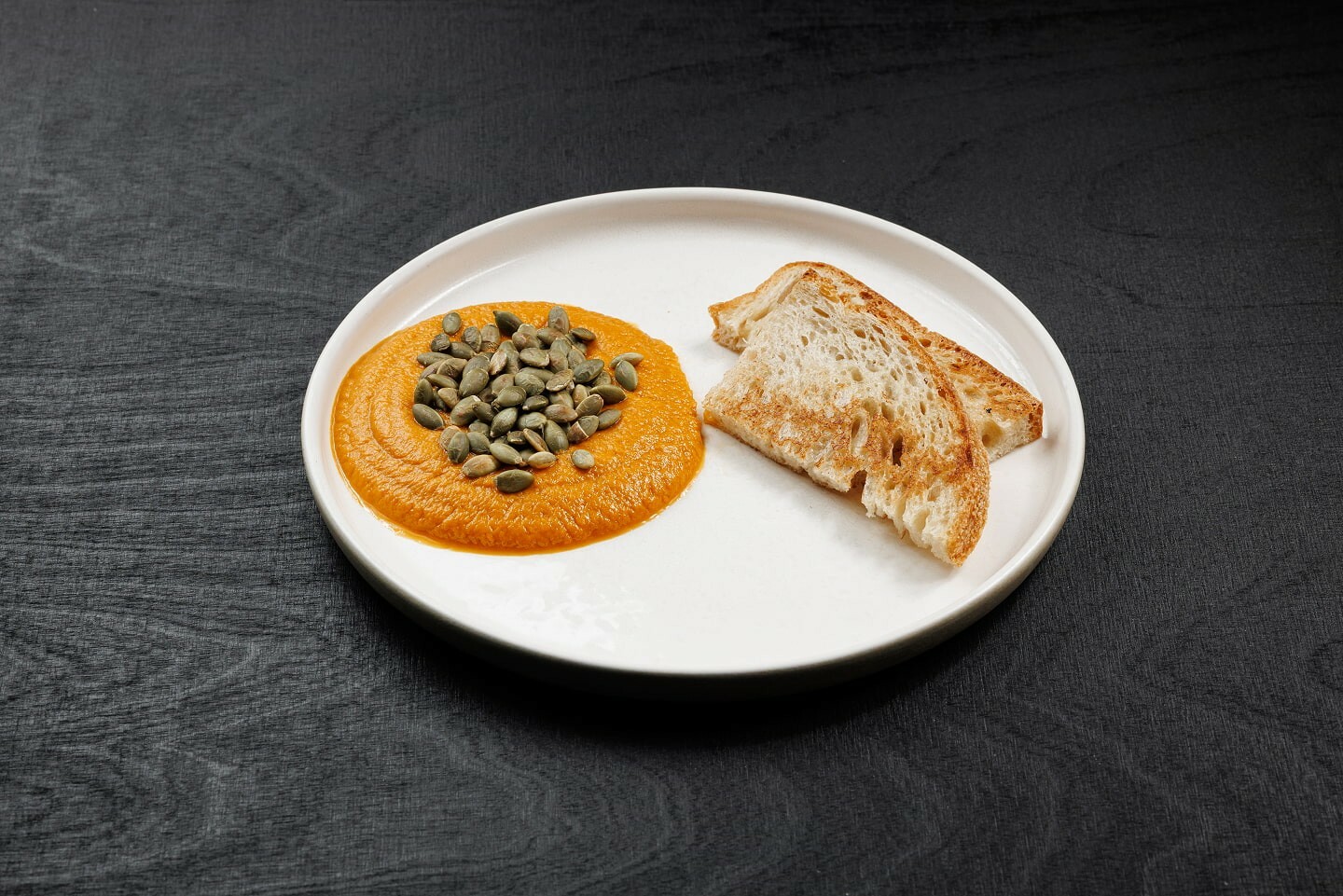 кабачки, морковь, лук, масло растительное, сахар, соль, винный уксус, сосус ворчестер, кориандр, паста томатная, куриный бульон, семечки тыквенные, хлеб тартин, масло сливочное