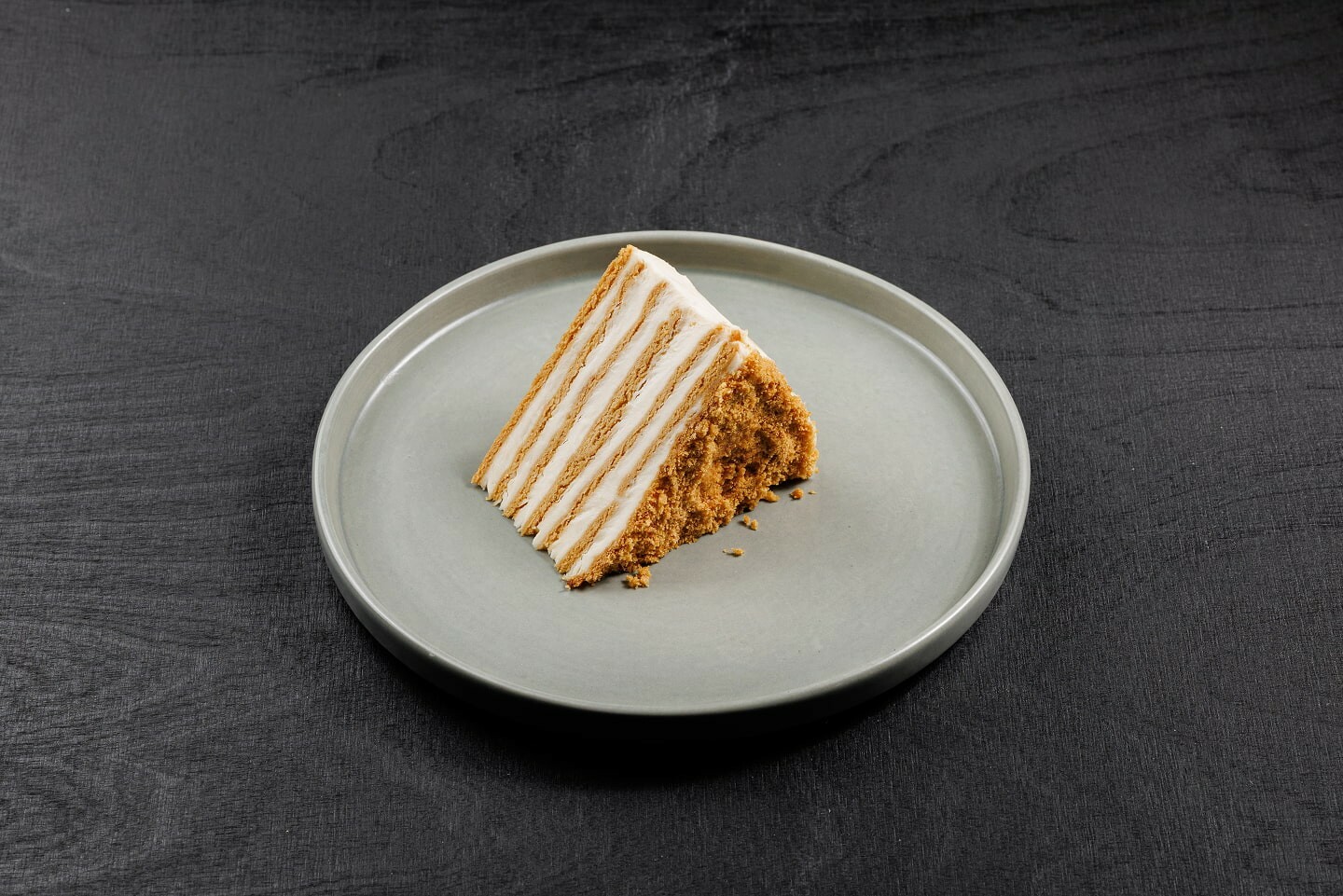 тончайшие песочные коржи, пропитанные натуральным медом и шелковистая текстура заварного крема с черными семенами ванили Бурбон.