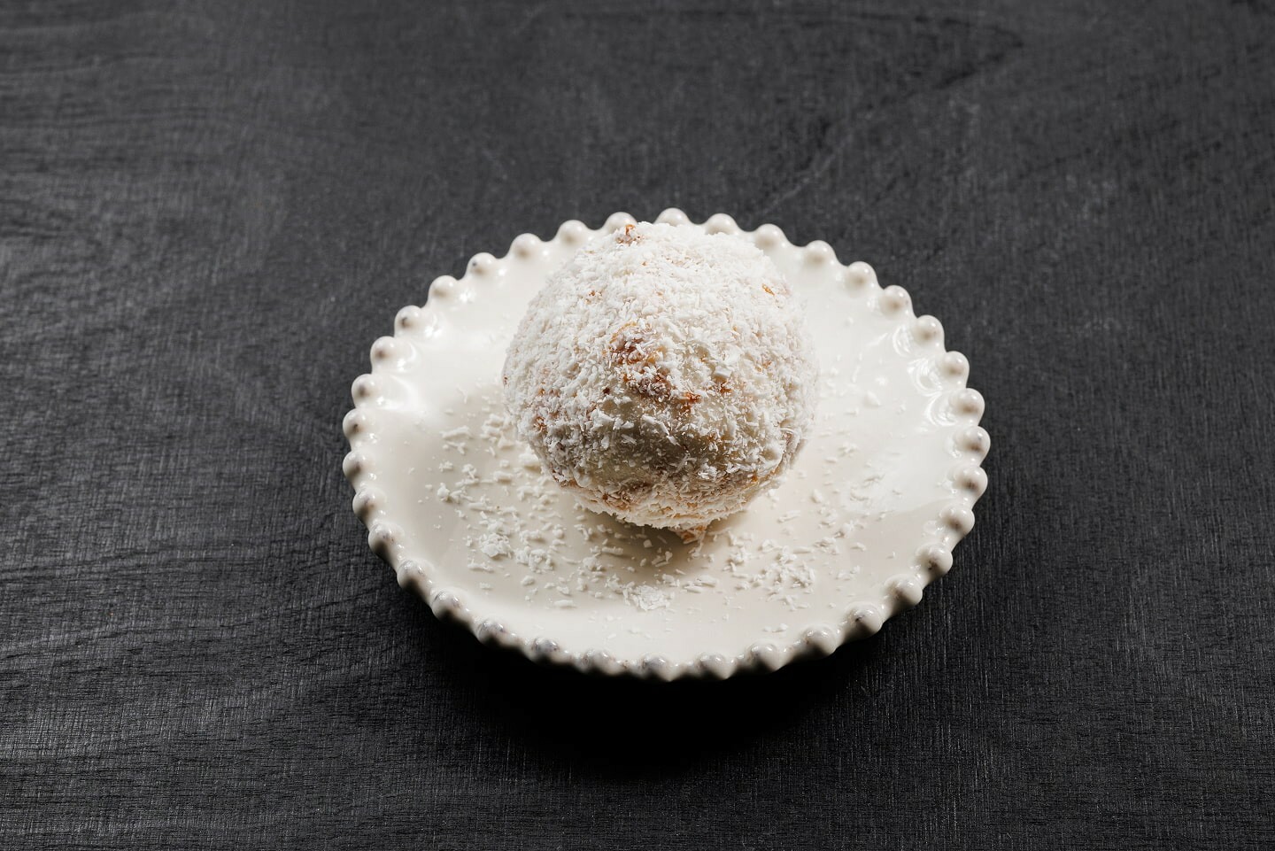 Кокосовый корпус из белого шоколада, внутри — нежнейший крем и колотый миндаль.