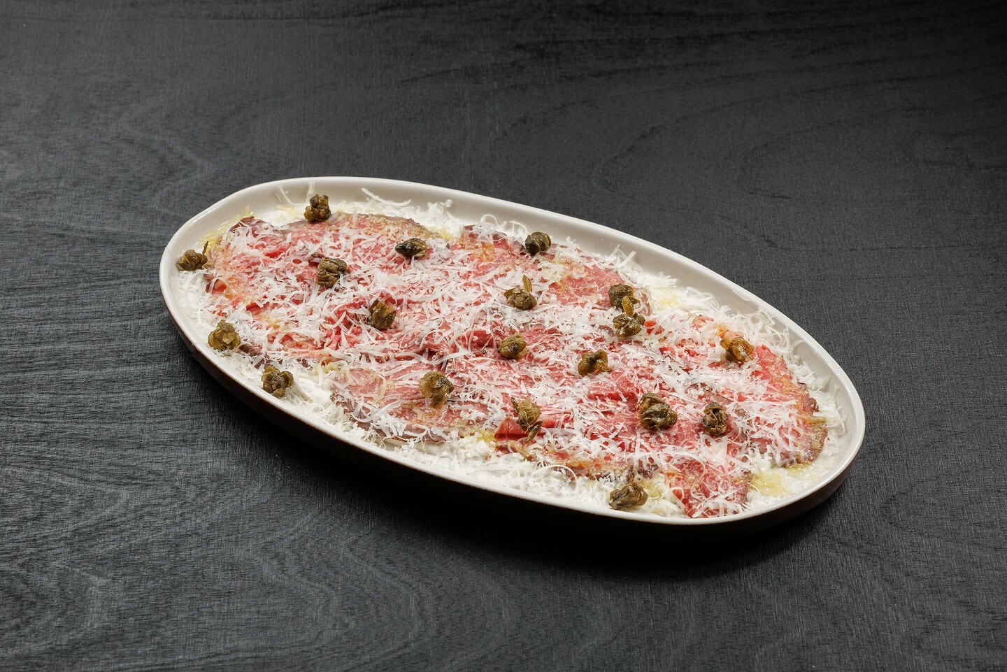 говядина, соевый соус, имбирь, чеснок, тимьян, розмарин, майонез, тунец, рыбный соус, сок лимона, перец, сыр грюйер, масло трюфельное, каперсы